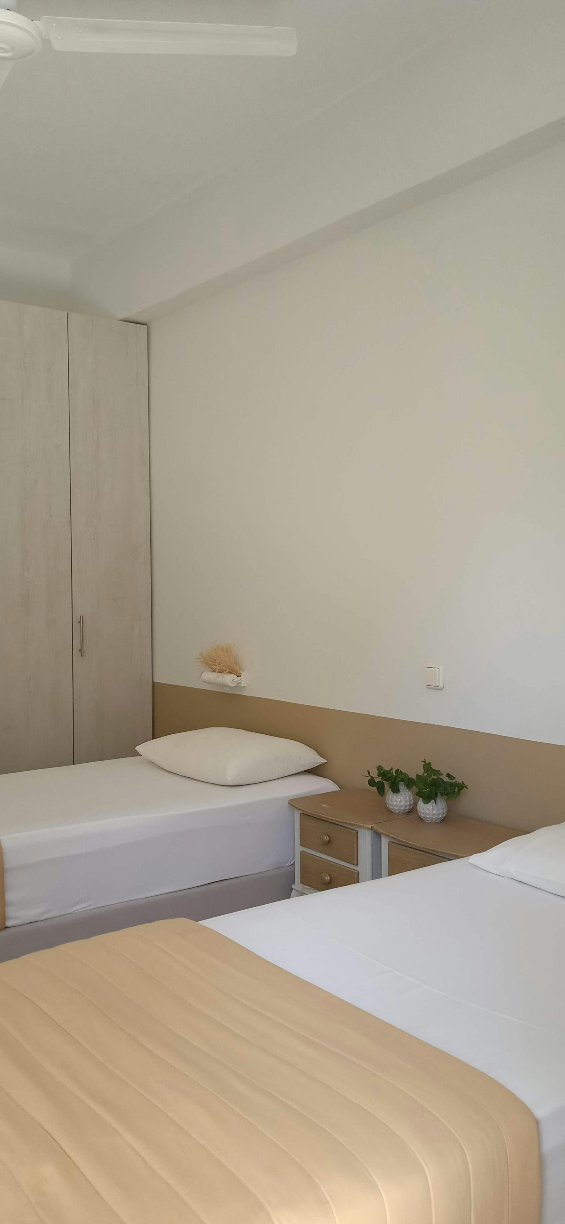 Two single beds or one double bed (depending on the room)